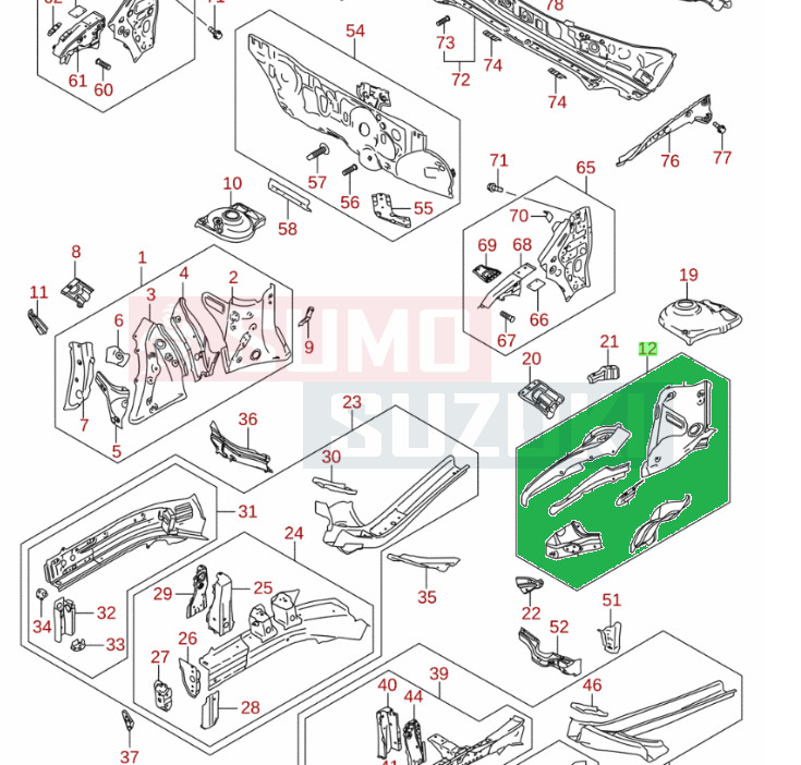 A képen jelölt zöld négyzetben lévő alkatrészeket tartalmazza.