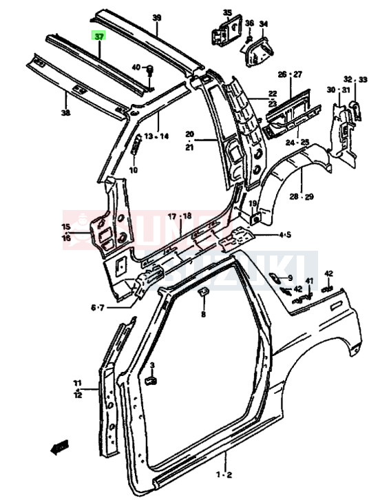 Suzuki Vitara SE416 tetőmerevítő középső 65110-60A00