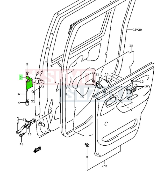Suzuki WR+ ajtózsanér hátsó 69411-83E00