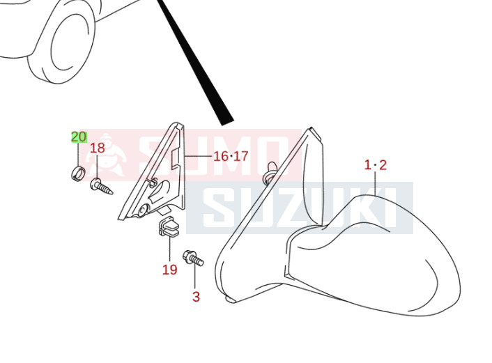 Suzuki Alto 2002-06 visszapillantó tükör, jobb 84701M79G30-5PK